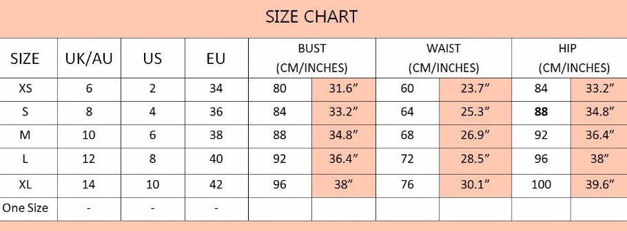 Size: XS, S, M, L Please review measurement chart below on the last picture