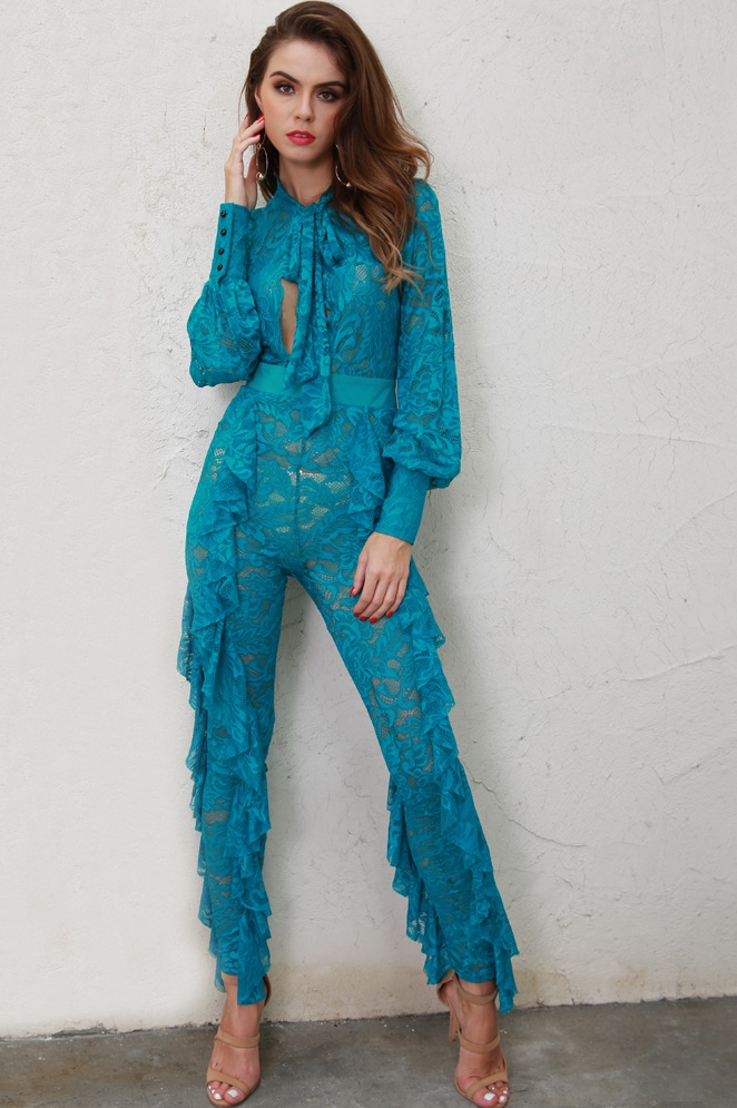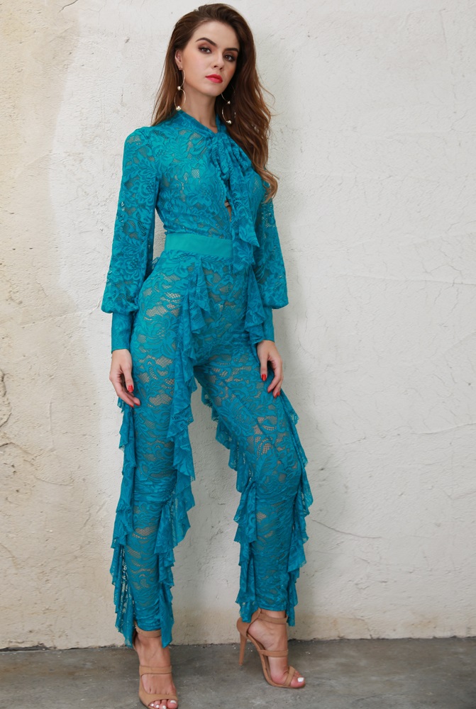 Aqua Blue Lace Jumpsuit