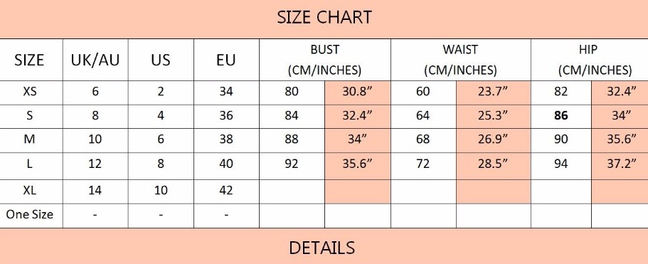 Size: XS, S, M, L Please review measurement chart below on the last picture