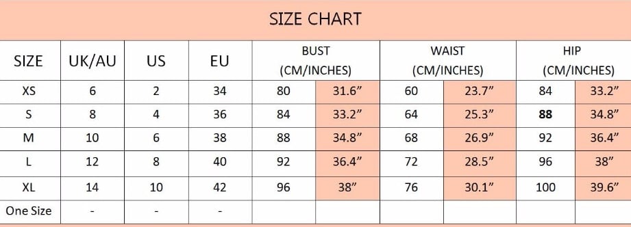 Measurements are in centimeters.(UK Sizes)