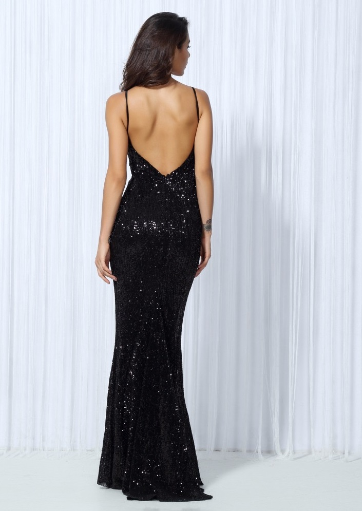 Black Sequin Evening Gown